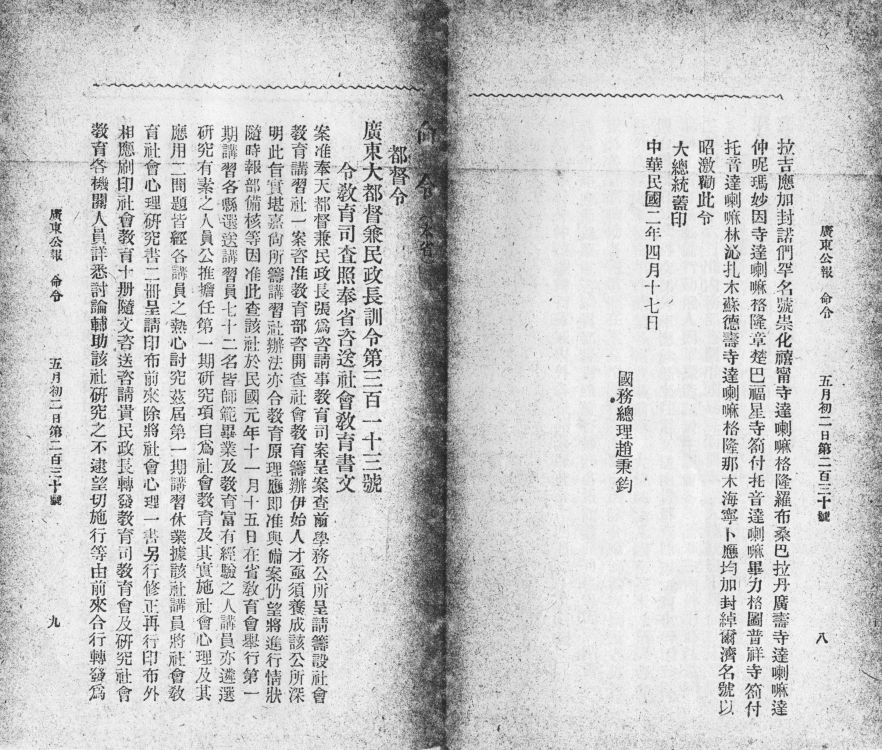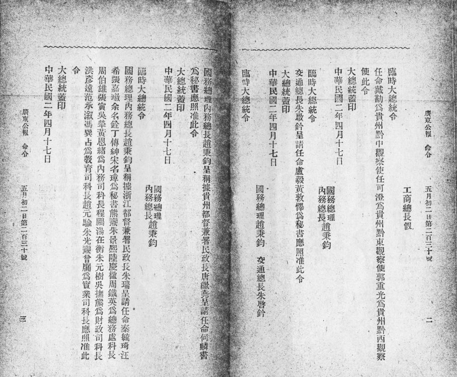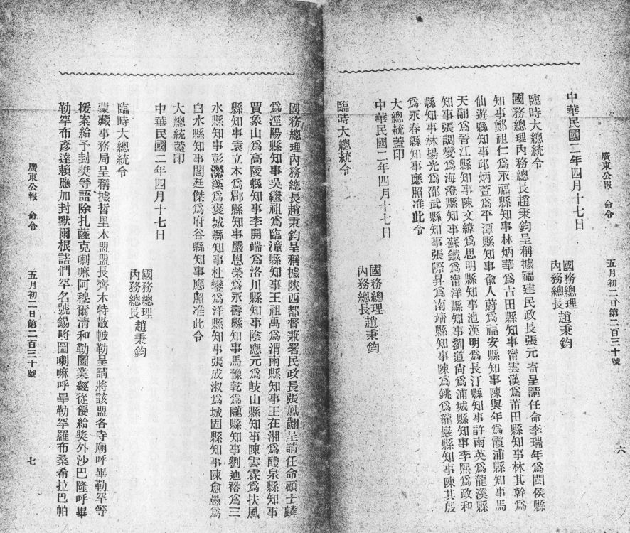 成文日期: 19130501 档号: G2014-广东公报-0786